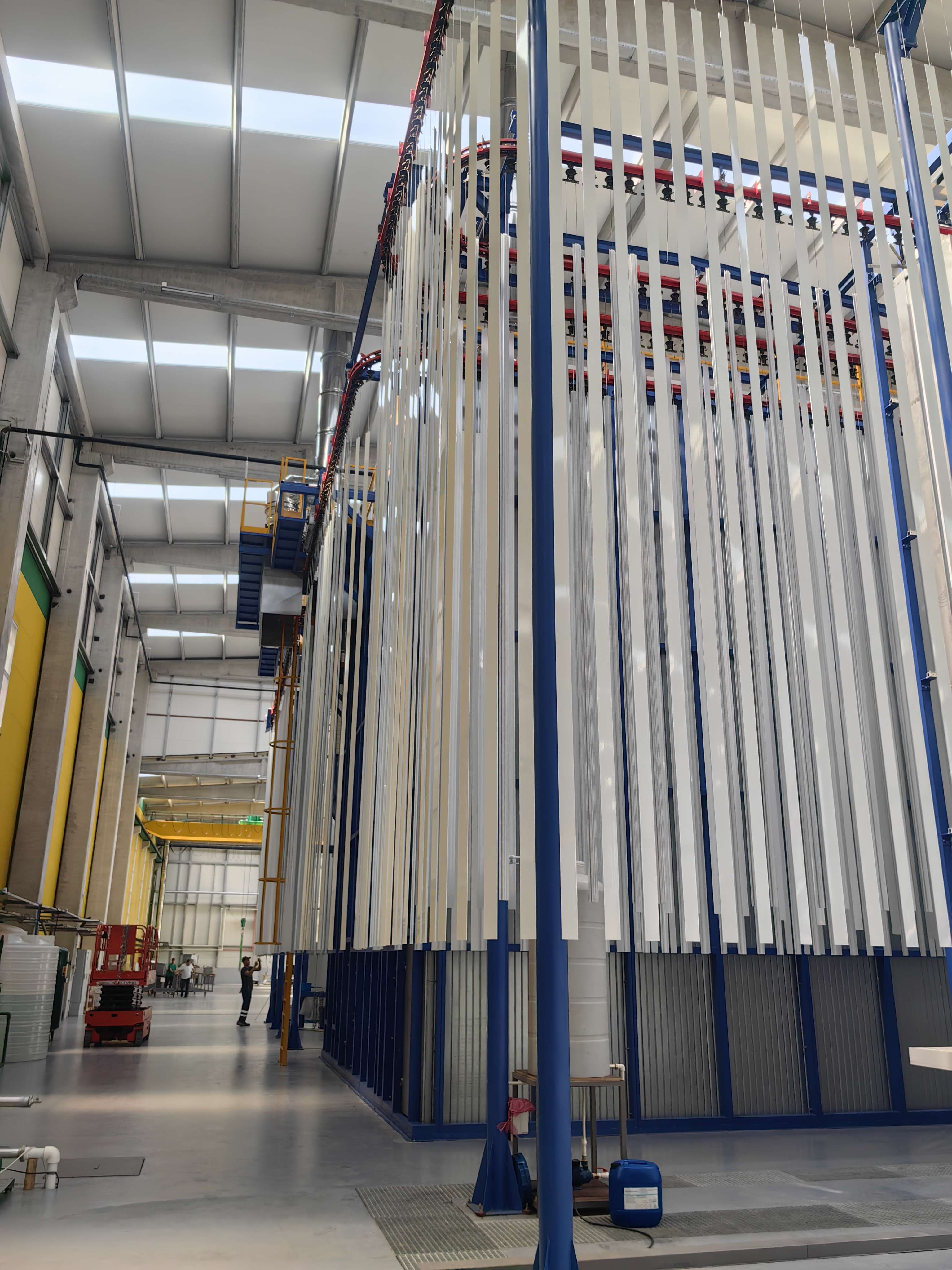 Cette proposition est conçue pour une ligne de revêtement par poudre verticale pour profilés en aluminium—Un seul poste
