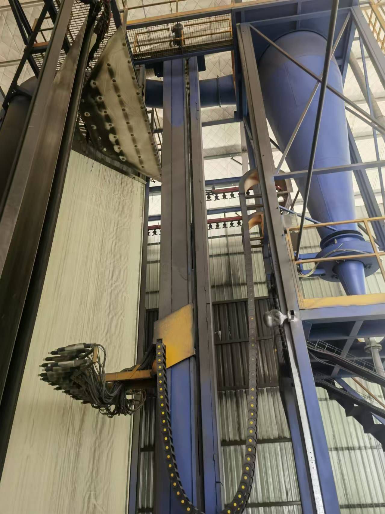 8, Les profilés séchés entrent dans la cabine de pulvérisation à une vitesse de chaîne de 1—2,5/m pour la pulvérisation (La vitesse de la chaîne est réglable en fonction des besoins du client).