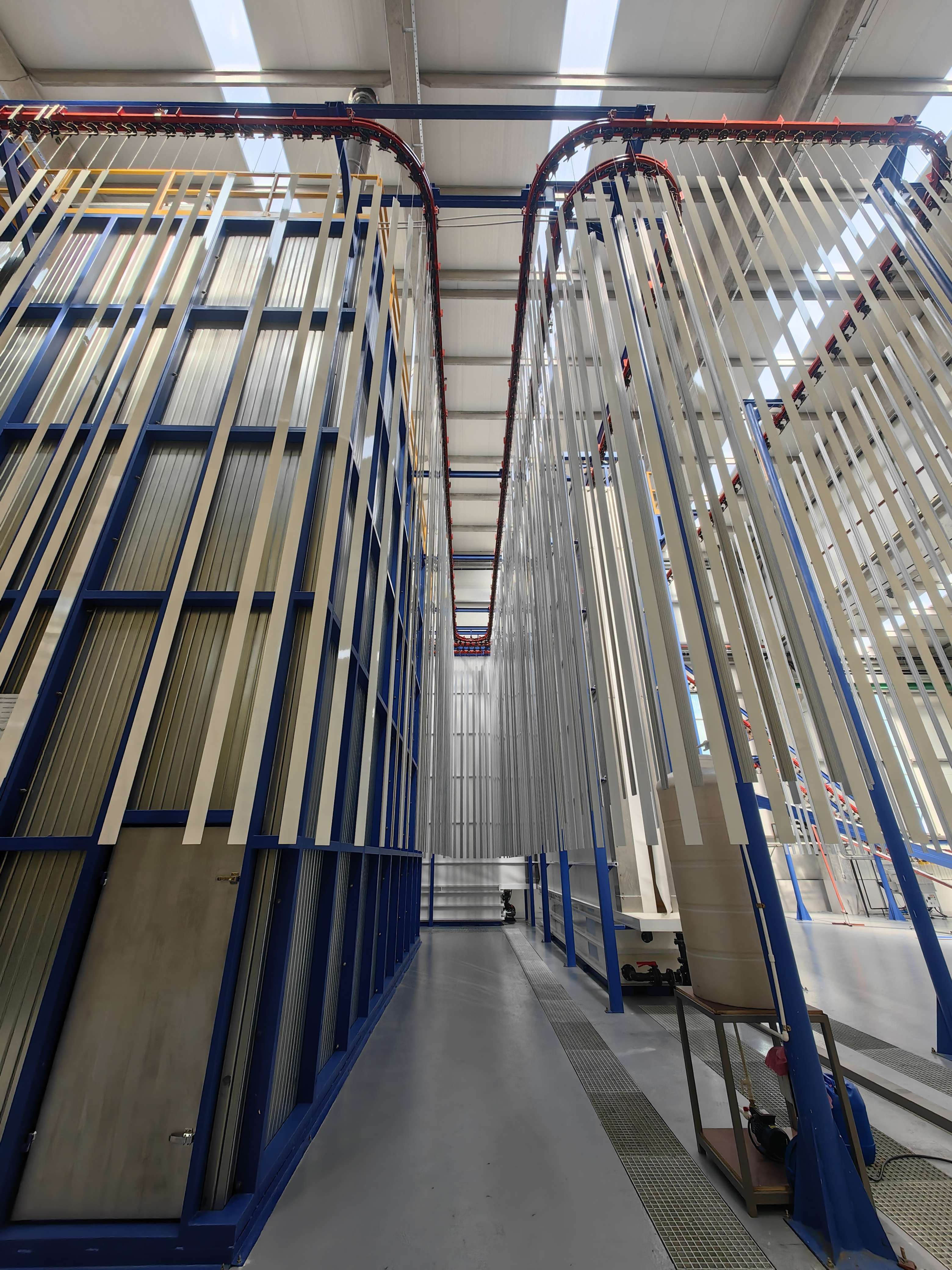 Cette proposition est conçue pour une ligne de revêtement en poudre verticale pour profilés en aluminium — Une cabine