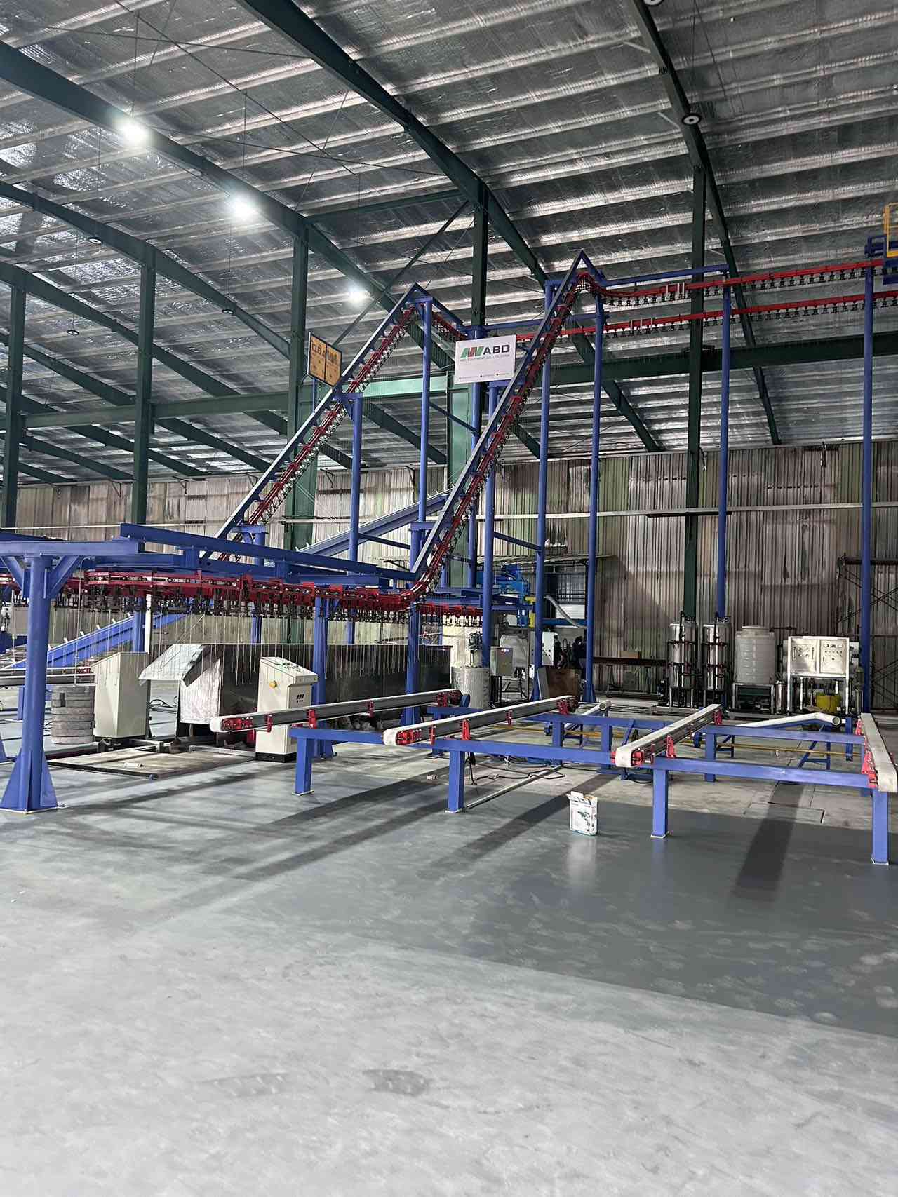 Composant principal:Couche en poudre Système de convoyeur suspendu,Système de chargement et de déchargement,Prétraitement,Four à séchage,Chamber de couche en poudre et système de recyclage,Four à durcissement,Système de contrôle électrique,Pistolets de couche en poudre,Centre d'approvisionnement en poudreCompresseur d'air, système de machine à eau, etc.
