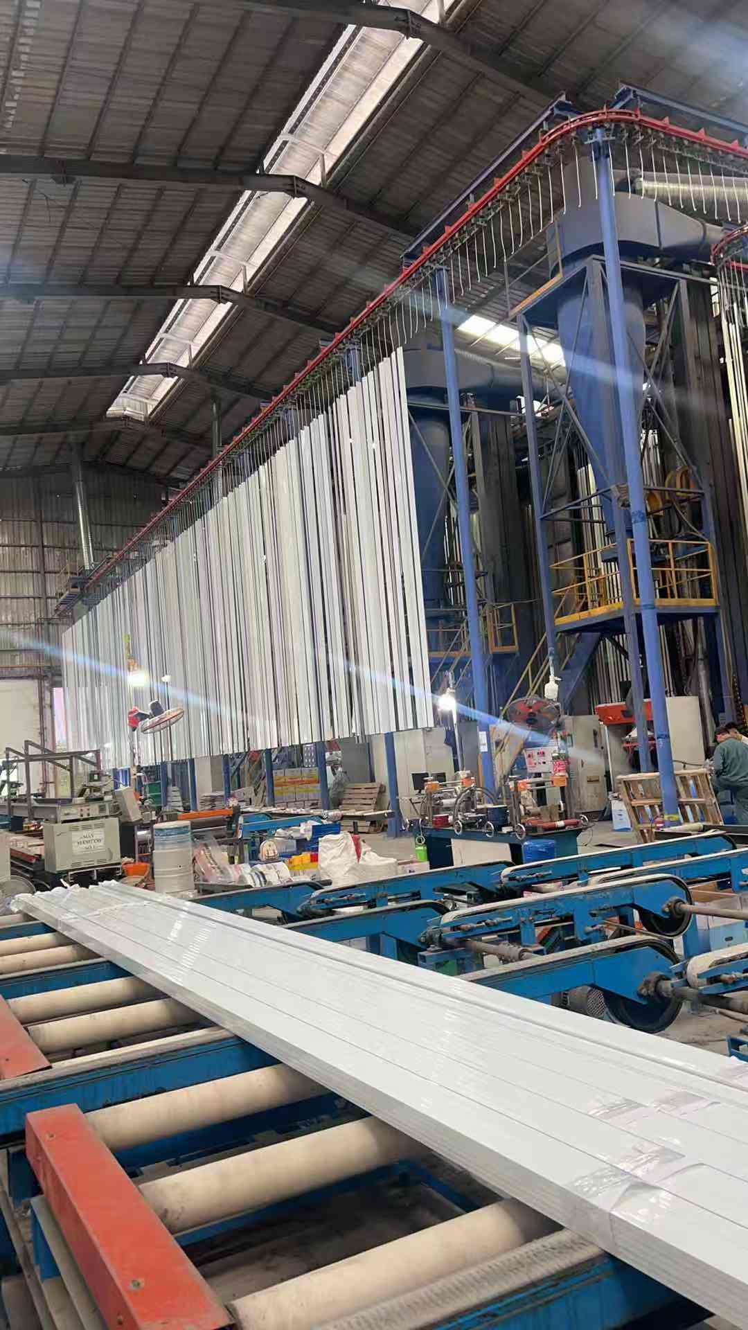 11, Les profilés qui ont été cuits et libérés sont chauffés dans leur ensemble. Ne touchez pas la surface des profilés à mains nues. Après refroidissement, ils peuvent être retirés de l'étagère. Après avoir retiré l'étagère, vérifiez les produits pulvérisés. La surface doit être lisse et le revêtement doit être uniforme. marques, peau d'orange et autres phénomènes, puis peuvent être emballés après avoir réussi l'inspection de qualité professionnelle.