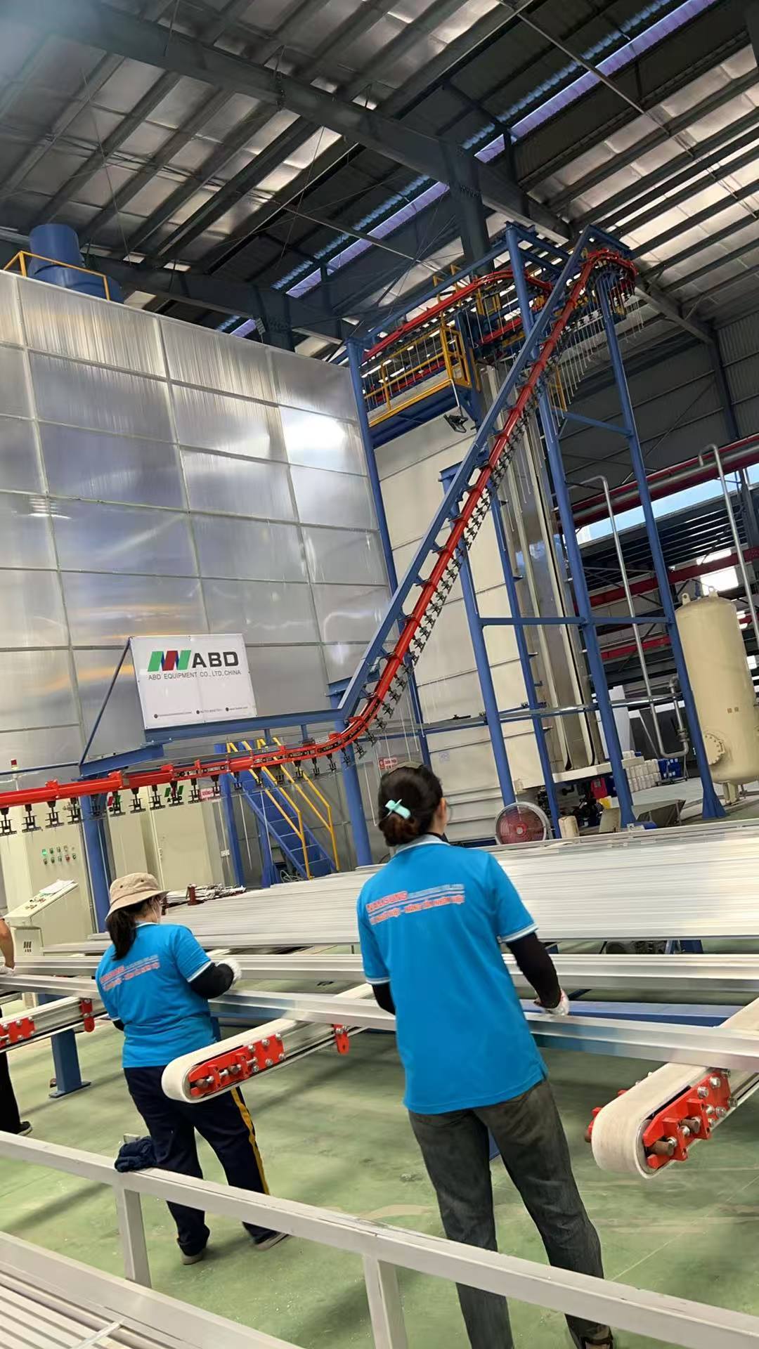 Cette proposition est conçue pour la ligne verticale de revêtement en poudre de profilés en aluminium