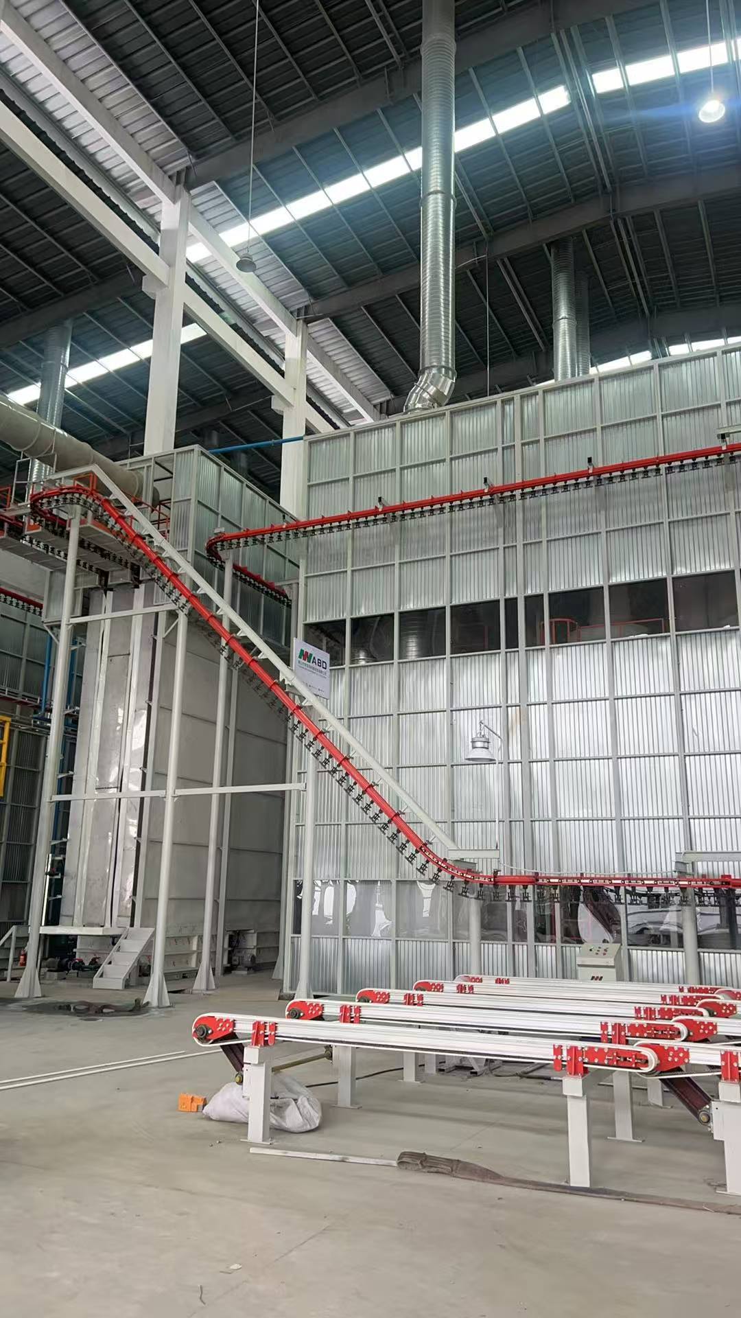 8"Les profils séchés entrent dans la cabine de pulvérisation à une vitesse de chaîne de 1 ̊2,5 / m pour pulvérisation ((La vitesse de chaîne est réglable en fonction des besoins du client).